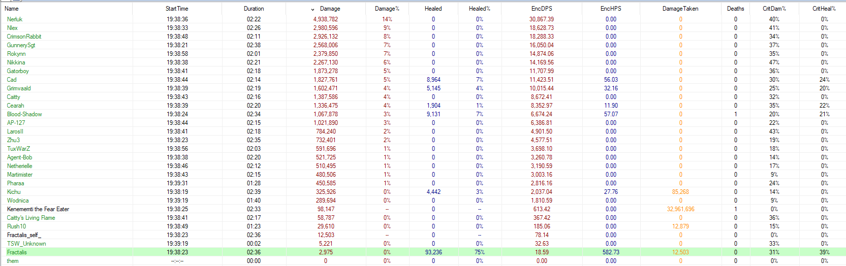 I'll post the DPS numbers for this week-end too, then. The damage on the tank is in a separate thread. No matter how long the fight is, if the boss hits the tank for 20k, this is still going to be 20k to heal. This is why I post timelines of the fights instead of averages, which completely hide this fact.